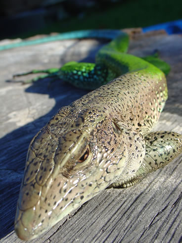 Caught this water monitor (varanus salvator) in 2004. She's a bit moody, but still doing fine. Also my foot is there to show scale.. I'm not stepping on her. ha!